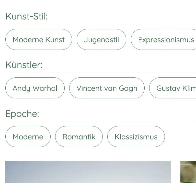 Wir haben in unserem Beispiel Kunststile und Künstler als Referenz-Tags den Kunst-Stilen zugeordnet. Dadurch werden beim Filter-Wert "Moderne Kunst" alle Seiten angezeigt, die zB. "moderne kunst", "warhol" oder "popart" als Tags haben. Man kann natürlich auch mehrere Filter bei einer Seitengalerie aktiviere n, z.B. Stil, Künstler, Epoche, Herkunft etc.